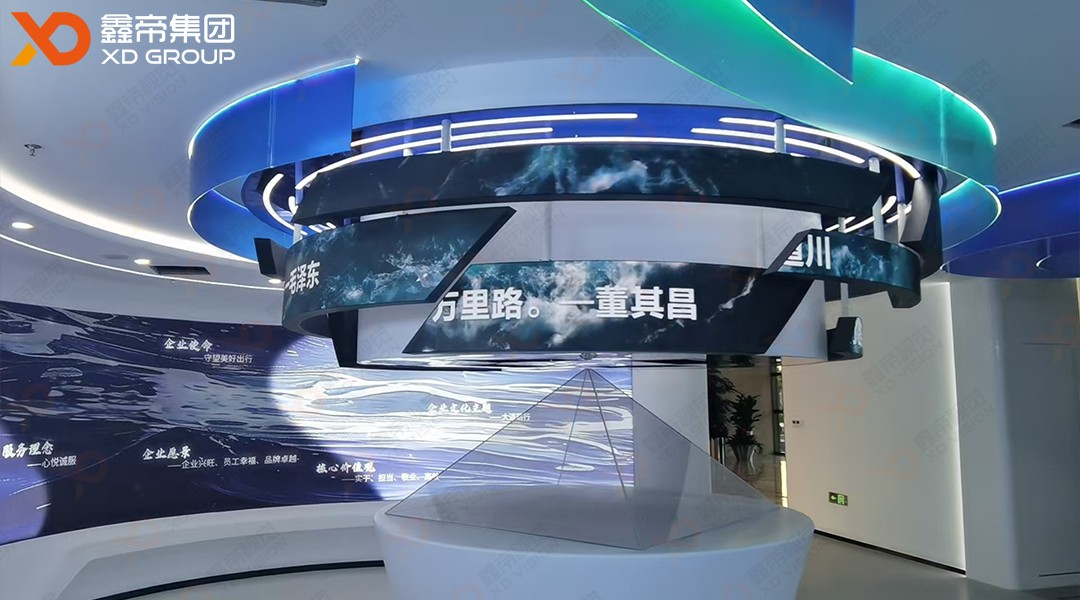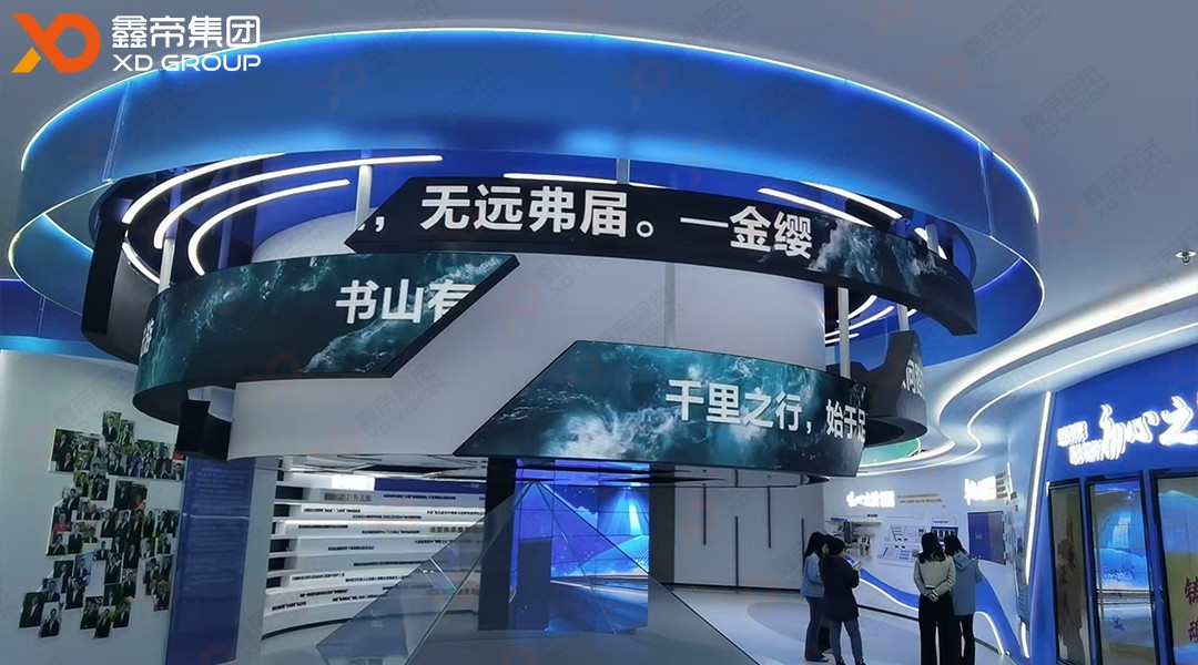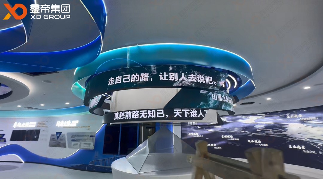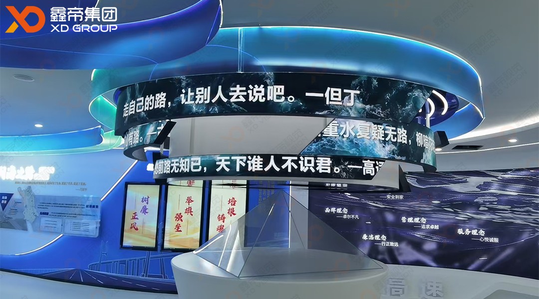 “客户的需求,就是鑫帝的使命。”面对江苏东部高速集团对展厅科技感与艺术性的双重期待,鑫帝集团不仅提供硬件解决方案,更深度参与空间动线设计与内容交互策划,打造“显示+交互+内容”的一体化生态。从前期3D建模到现场精准安装,从系统调试到后期运维支持,鑫帝以全流程服务确保项目零瑕疵交付,最终呈现的异形定制LED环幕不仅成为展厅的视觉核心,更成为行业异形显示技术的标杆案例。