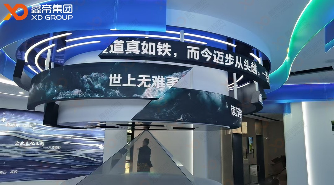 在江苏东部高速集团企业展厅的璀璨空间中,一座由鑫帝集团匠心打造的平行四边形LED环幕惊艳亮相。当光影流转、画面跃动,这场科技与艺术的交融盛宴,不仅刷新了行业对LED异形显示技术的认知,更彰显了鑫帝集团在高端LED定制化领域的硬核实力。