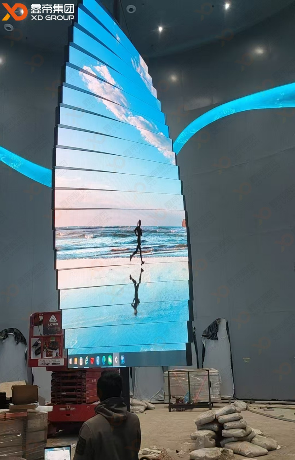 作为行业领先的LED显示解决方案提供商,鑫帝集团始终以客户需求为核心,从方案设计、精密制造到安装调试,全程提供一站式服务。此次项目克服了高空作业、多层同步校准等技术难题,以零误差标准交付,再次印证了鑫帝“技术领先、品质至上”的品牌承诺。