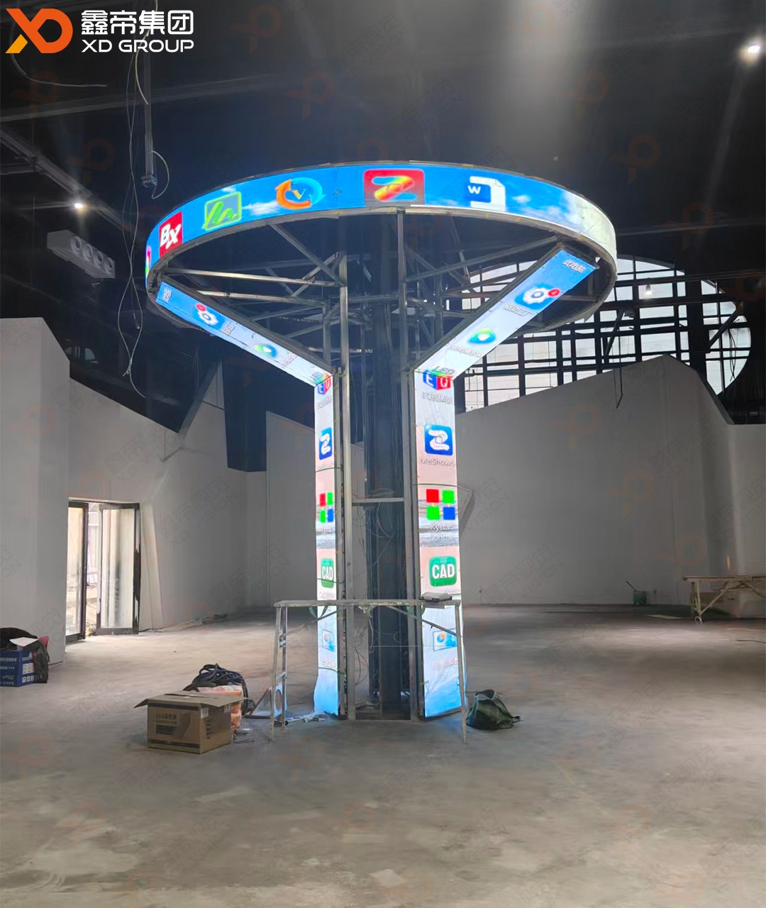 ● LED智慧树:以树形结构为骨架,枝干间嵌入高清屏幕,象征工业与生态的和谐共生;