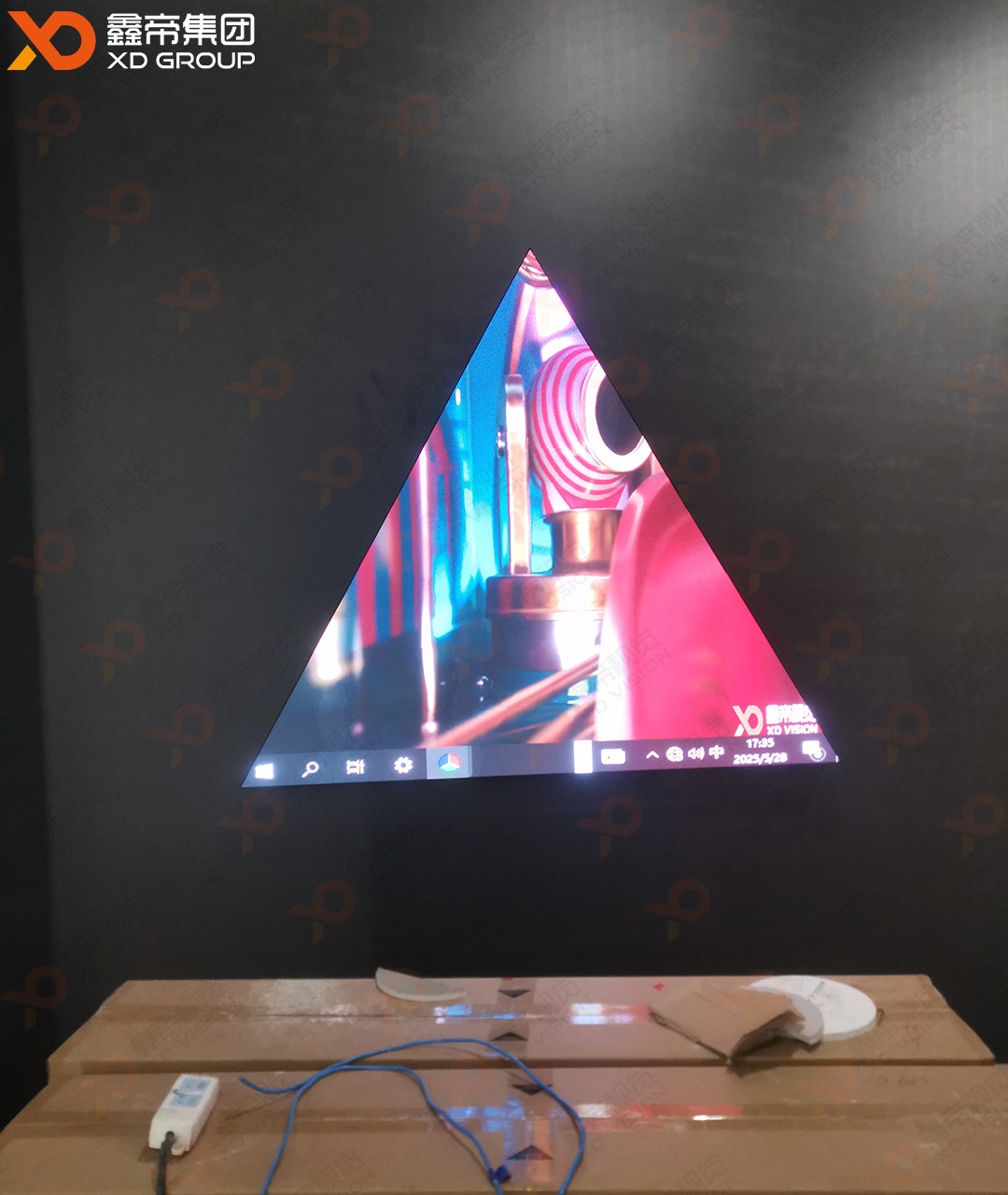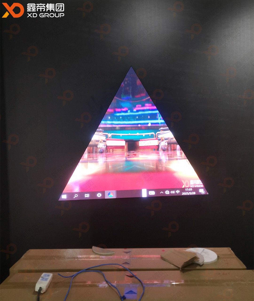 而那块正三角形LED屏,更是整个场馆的点睛之笔,宛如一颗璀璨的明珠,散发着独特的魅力。它由鑫帝集团自主设计研发定制的正三角形模组拼装而成,每一个边长200mm的模组都凝聚着鑫帝人的智慧与心血。这些模组巧妙组合,最终形成了一个边长1600mm的正三角形LED屏,其独特的造型设计打破了传统显示屏的方正格局,给人以强烈的视觉冲击。在光影的交织下,它时而变幻出绚丽多彩的图案,时而展示出富有创意的视频内容,成为了全场当之无愧的吸睛亮点,吸引着无数游客驻足观赏、拍照留念。
