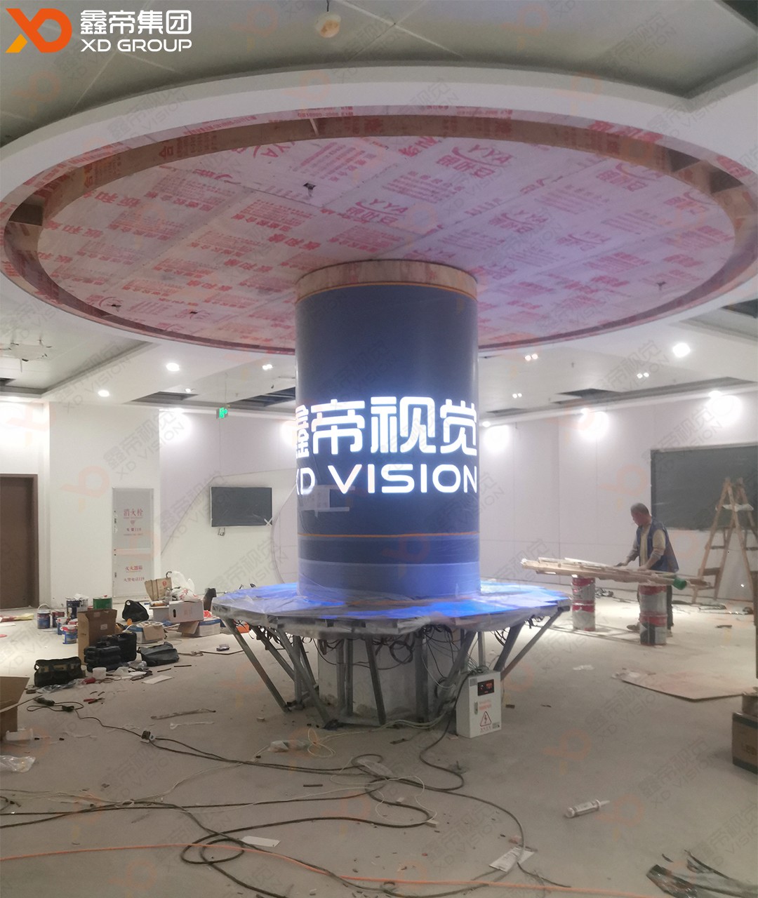 项目以"人屏交互、极致纤薄、色彩无界"为核心诉求,鑫帝集团技术团队突破传统显示技术边界,采用户内超高清P1.8间距LED显示屏,通过3款定制化产品的精密组合,构建出沉浸式LED圆柱与圆形屏交互系统。