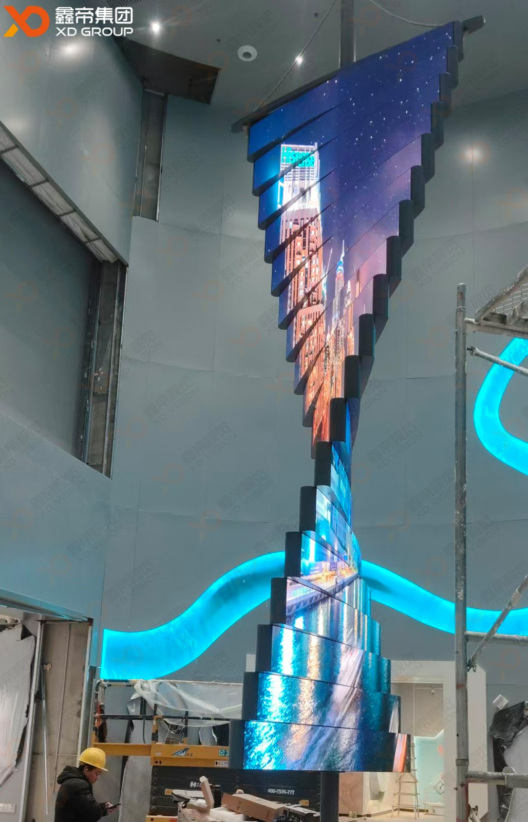 作为行业领先的LED显示解决方案提供商,鑫帝集团始终以客户需求为核心,从方案设计、精密制造到安装调试,全程提供一站式服务。此次项目克服了高空作业、多层同步校准等技术难题,以零误差标准交付,再次印证了鑫帝“技术领先、品质至上”的品牌承诺。