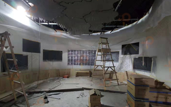 浙江党建中心七块P2.5创意柔性屏安装中!LED柔性屏具有·软、薄、轻,适用于任何弯曲效果,主要适用于商场立柱、酒吧、舞台背景、展厅、规划展示馆等需要艺术造型的场所。